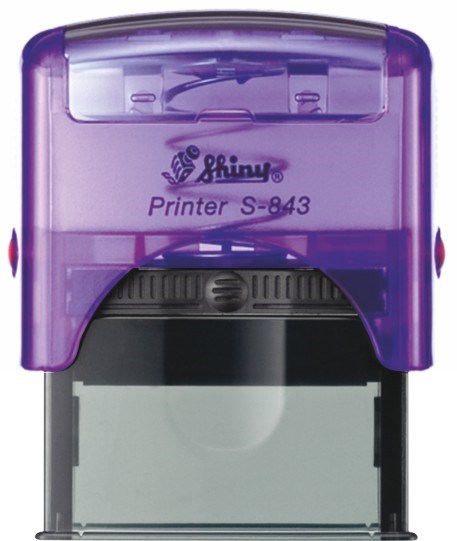 Razítko Printer line S-843 - fialová transparentní. Optimální pro umístění potřebných informací: název firmy, sídlo, IČ, DIČ, telefon, e-mail, www stránky. Transparetní spodní díl razítka pro přesné umístění otisku.