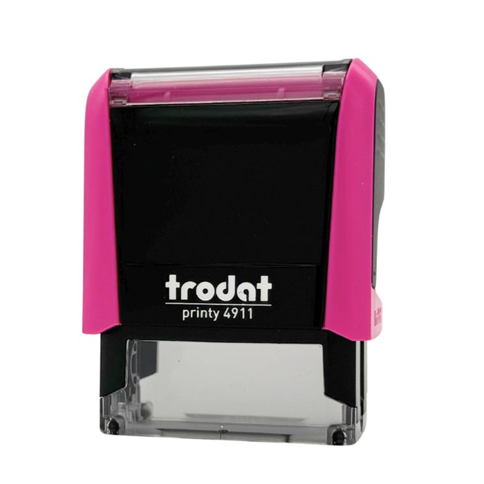 Razítko Trodat Printy 4911 fialová je vhodné pro tisk základních firemních údajů, např. firma, sídlo firmy, telefon a IČ, ale také jako jmenovky, např. pro lékaře, skladníky atd.